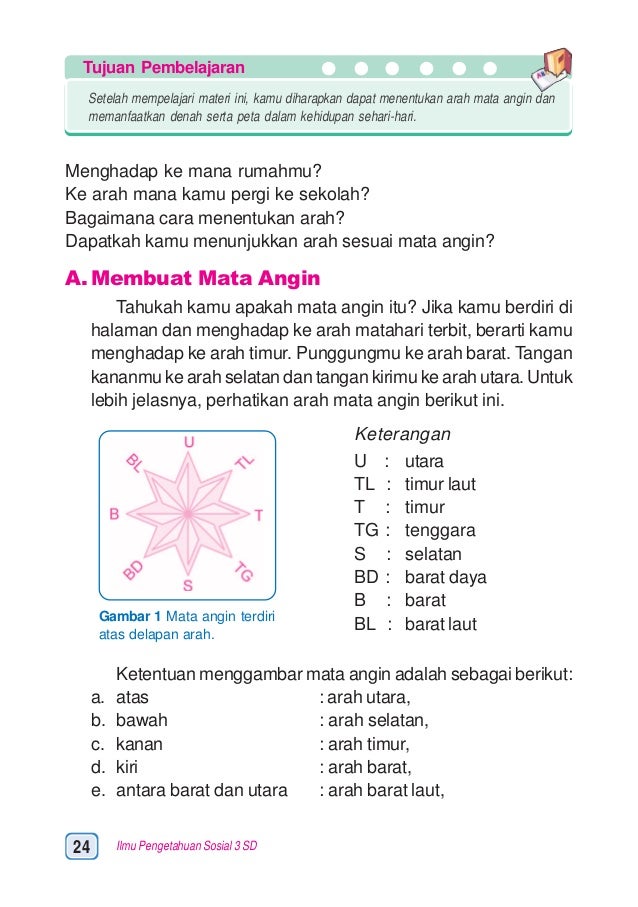 Biasanya pada peta atau denah arah utara selalu berada di sebelah atas arah selatan berada di bawah arah barat berada di sebelah kiri dan arah timur berada di. Arah mata angin bisa dibagi menjadi delapan penjuru arah yaitu utara timur laut timur tenggara selatan barat daya barat barat laut. Mata angin merupakan panduan yang digunakan untuk menentukan arah.